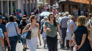 Bensheim. Sommerliche Temperaturen, ein blauer Himmel und ordentlich Betrieb in der Bensheimer Fußgängerzone: Die Kunstmeile und der verkaufsoffene Sonntag, vom Stadtmarketing und den Einzelhändlern organisiert, ging bei besten Rahmenbedingungen über die Bühne. Nach einer zweijährigen Corona-Pause konnten die Besucher wieder Künstlerisches und Kunsthandwerk in der Innenstadt bewundern. Bummeln in den teilnehmenden Geschäften war ebenso beliebt wie sich in einem der Cafés, bevorzugt im Außenbereich, niederzulassen, um das geschäftige Treiben in aller Ruhe zu verfolgen. Kurzum: Es war für alle Beteiligten ein schöner Nachmittag im Bensheimer Zentrum – und das trotz einiger Konkurrenzveranstaltungen in direkter Nachbarschaft. Ein Bericht über die Kunstmeile folgt. red/Bild: Neu
