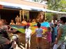 Wichtig sei, dass generationenübergreifend gearbeitet werde. Nicht nur Menschen gleichen Alters könnten mitmachen, auch Kinder seien willkommen. Das Projekt gehe weiter, hoffentlich mit allen seitherigen Teilnehmern, und dazu würden Mitmacher gesucht. Interessenten sollten sich bei der Heimleitung melden, warb sie. Katrin Bremer ließ es aber nicht dabei, sie nutzte die Vernissage, um die Heimbewohner und Gäste mit den Theaterrequisiten auszustatten, die in der Vergangenheit benutzt worden waren.