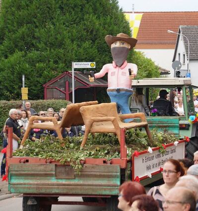 Doch die Einhäuser und auch einige Besucher freuten sich, endlich wieder feiern zu dürfen. Zahlreiche Kerwefans säumten um kurz vor 14 Uhr den Weg des Umzugs, der letztlich doch noch von den ursprünglich angekündigten zehn bis 15 auf letztlich 23 Zugnummern angewachsen war. Neben den Motiv- und Prunkwagen der Kerwegruppen und des VzEdT hatten es sich beispielsweise auch die Grundschule und die „sieben Leute“ der „Musikkultur“ nicht nehmen lassen, sich in das bunte Minispektakel einzureihen. Und neben dem Musikcorps der Einhäuser Feuerwehr sorgten auch die Bensemer Roabdigalle mit ihren Instrumenten für Stimmung.