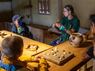 Erstaunt zeigten sich die jungen Besucher aus Einhausen, dass Kinder im Mittelalter Bier trinken durften. „Weil das Wasser nicht trinkbar war“, erfuhren sie. Unbekannt erwies sich für die Kinder ein Baum mit gelben Früchten. „Das ist ein Mirabellenbaum“, erklärte ihnen Reimund Strauch. „Die Früchte sind essbar“ fügte er hinzu. Als die Kinder sich nicht trauten, steckte er selbst eine Mirabelle in den Mund. Das probierten dann auch die unwissenden Kleinen und sie kamen zu dem Schluss: „Schmeckt gut“. Die Kinder kannten auch kein Reet-Dach und sie wunderten sich, dass „der Herr“ alles bestimmen konnte, auch wer heiraten durfte.