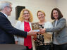 Kurz darauf brachte Christian Engelhardt selbst Licht ins Dunkel. Er gab bekannt, dass er eine ganz besondere Ehrung mitgebracht hatte. Gemeinsam mit dem Bürgermeister verlieh er den Landesehrenbrief an Christiane Hiemenz. Es sei die höchste Auszeichnung des Landes Hessen für ehrenamtliches Engagement. Als äußeres Zeichen gibt es eine Ehrenurkunde, unterzeichnet vom Ministerpräsidenten Boris Rhein, und eine Anstecknadel.