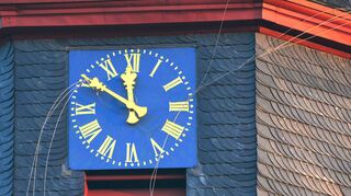 Reichenbach. Seit einiger Zeit steht die Turmuhr an der evangelischen Kirche in Reichenbach. Die seit Februar defekte Taubenabwehr hat sich bei einem der jüngsten Stürme im Zeigerwerk verfangen und die Zeitanzeige außer Tritt gebracht. Jetzt soll nach Angaben der Küsterin Tatjana Bauer versucht werden, mit Hilfe einer Arbeitsbühne den Schaden in luftiger Höhe zu beheben. koe