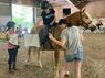 Unter Anleitung von Samira Laßhof, Luca Anna Schwarz und Eva hieß es aber erst einmal Pferde putzen – denn wer reiten möchte, der muss dem Ross zuerst den Dreck aus dem Fell bürsten. „Die haben wir heute früh von der Weide geholt und durch den Regen waren sie sehr sauber“, so Jugendwartin Samira Laßhof. Die Kinder durften die Pferde trotzdem bürsten und die Hufe auskratzen. Jeweils vier Kinder putzten die Fjordstute Tamia und den Welsh-Cob-Wallach Pico. „Sind die Pferde jetzt sauber?“, wollte Luca Anna Schwarz von den Kindern wissen. „Ja, sind sie“, meinten Rania und Amelie.