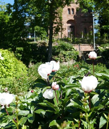 Vor allem die Baumpäonien sind in dem öffentlich zugänglichen Garten rund um die evangelische Kirche bereits zu bewundern. Das Gelände ist kostenlos zugänglich. „Die Blüte wird sich weitere drei bis vier Wochen hinziehen“, so die Expertinnen, die den Päonien-Garten pflegen. Nach den Wildformen und den Baumpäonien sind die staudigen Arten und Sorten an der Reihe, ihre üppige Pracht entfalten. Insgesamt sind im Lorscher Garten, dem einzigen kommunalen Pfingstrosengarten deutschlandweit, wie man in Lorsch erklärt, fast 200 Arten und Sorten beheimatet.