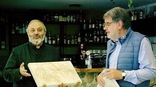Der Heppenheimer Künstler Josua Mattern vom Verein Noah übergab im Rahmen der Armenienreise eine von ihm erstellte Tafel über den Lorscher Bienensegen an den armenischen Bischof Bagrat.