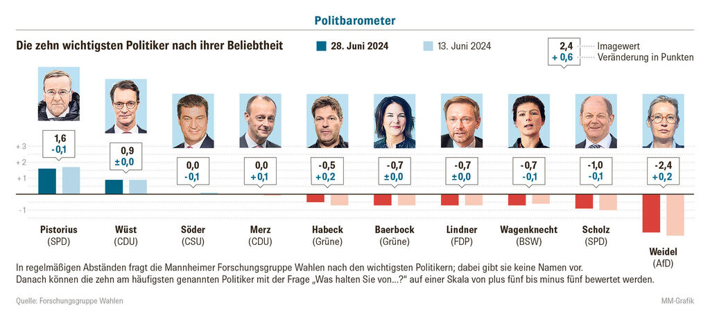 „Dass sich an diesem für die Koalition desaströsen Befund etwas ändert, ist unwahrscheinlich. Das mangelnde Zutrauen der Wählerinen und Wähler in die Bundesregierung ist fast schon zementiert. Die schwierigen Verhandlungen über den Bundeshaushalt dürften auch nicht gerade für positive Schlagzeilen sorgen“, sagt Matthias Jung von der Forschungsgruppe. Und dann stehen in diesem Jahr ja auch noch drei Landtagswahlen in Sachsen, Thüringen und Brandenburg an. „Es ist kaum zu erwarten, dass da Ergebnisse herauskommen, von denen die Ampel bundespolitisch zehren kann. Das ist die logische Folge des Erstarkens der AfD“, sagt Jung.