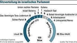 Tel Aviv. Der Zweikampf zwischen Benjamin Netanjahu vom Likud und seinem Herausforderer Benny Gantz, dem Chef von Blau-Weiß, ist entschieden. Nach Auszählung der Stimmzettel lag Amtsinhaber Netanjahu gestern klar vorn. Der extrem auf die beiden Spitzenkandidaten konzentrierte Wahlkampf ging vor allem zulasten der kleineren Parteien, die an der Sperrklausel scheiterten – und auf Kosten der Arbeitspartei. Machtlos mussten die Sozialdemokraten zusehen, wie ihre Wähler zu Blau-Weiß überliefen, denn nur Gantz hatte eine reelle Chance, Netanjahu vom Thron zu werfen.