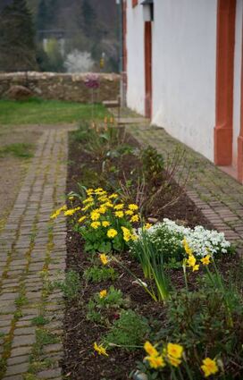 Bergstraße. Der Wind pfeift eisig auf der Nordseite der Auerbacher Bergkirche. Es ist ein grauer, kalter Morgen, ein Nachgeschmack des Winters. In einem kleinen, gepflegten Beet an der Kirchenwand wiegen sich die gelben Köpfe von Narzissen, die dem Wetter trotzen. Wer sie wohl gepflanzt hat? Es könnte jeder gewesen sein, denn dieser kleine Garten an der Kirche ist ein Gemeinschaftsgarten. Wer Schaufel und Pflanze mitbringt, darf sich hier vergnügen.