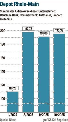 - Das Depot Rhein-Main enthält Papiere der Deutschen Bank und der Commerzbank, sowie von Lufthansa und Fraport. Hinzu kommt der Bad Homburger Fresenius-Konzern. mir