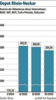 - Im Depot Rhein-Neckar liegen Aktien des Softwarekonzerns SAP, des Mannheimer Energieversorgers MVV, von Südzucker, dem Schmierstoffkonzern Fuchs Petrolub sowie der BASF.